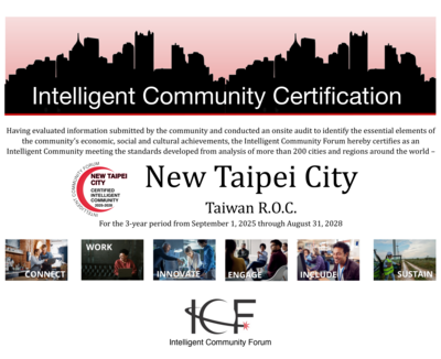 智慧治理在新北不只是願景,更化為具體行動獲得國際肯定。新北城市發展以「創新、勞動力、永續、公共參與、數位共融、人工智慧、寬頻與數位服務」等七大面向為主軸,讓科技走入市民生活。2025年,新北成為全球首座完成ICF智慧城市認證更新的城市,向世界展現智慧治理實力,也成為國際借鏡的重要城市典範。